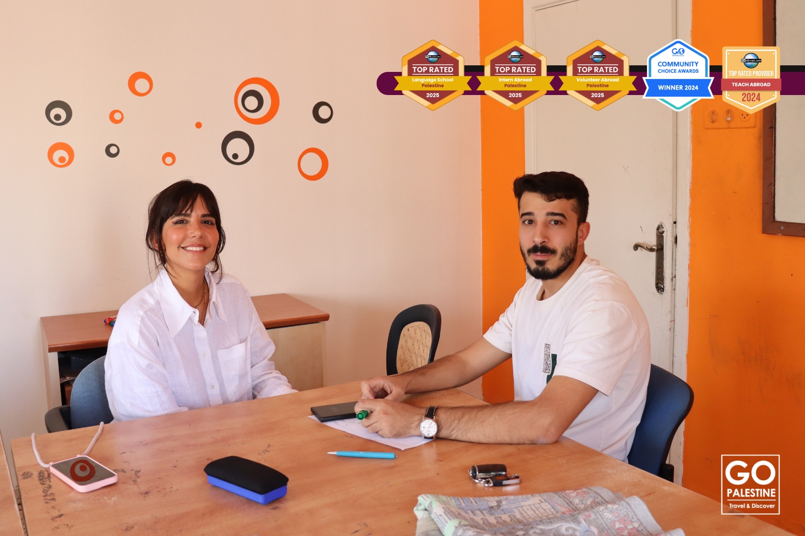 Go Study Arabic in Palestine has been honored with the Top Rated Volunteer Abroad: Palestine 2025 award by GoAbroad.com, recognizing its outstanding commitment to international volunteerism and cultural exchange. This prestigious recognition highlights Go Study Arabic in Palestine’s dedication to providing meaningful, safe, and impactful experiences for volunteers from around the world. With diverse programs focused on education, human rights, and community development, Go Study Arabic in Palestine continues to foster cross-cultural understanding while empowering Palestinian communities. This award is a testament to the organization’s professionalism, dedication, and the life-changing experiences it offers to volunteers and local participants alike.